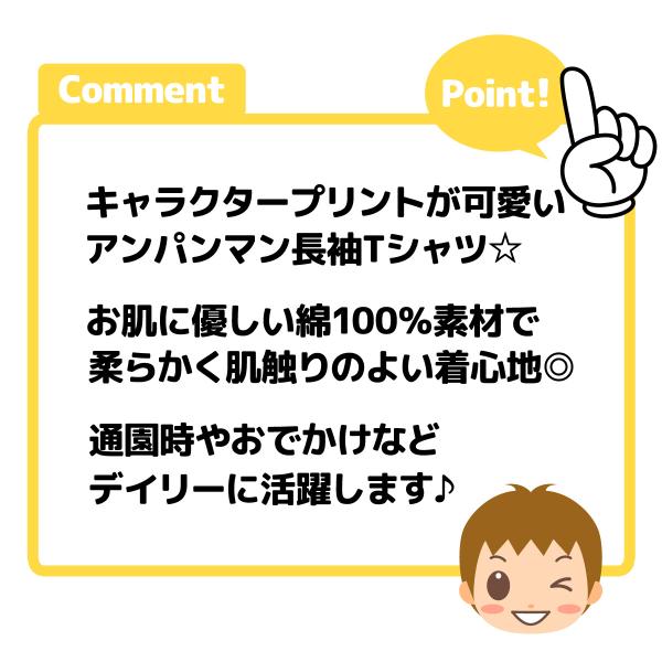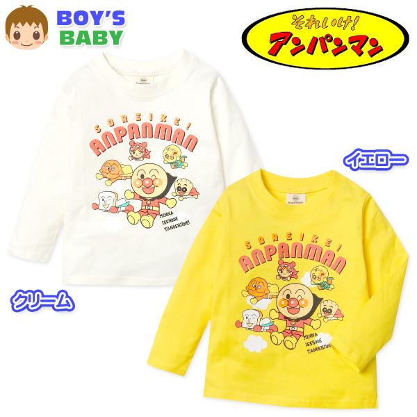 送料無料 男児 ベビー 綿100% 長袖 Tシャツ アンパンマン キャラクタープリント ベビー服 男の子 80cm 90cm 95cm iw-1052 メール便対応