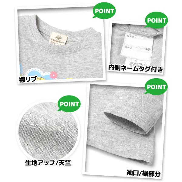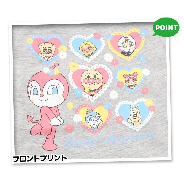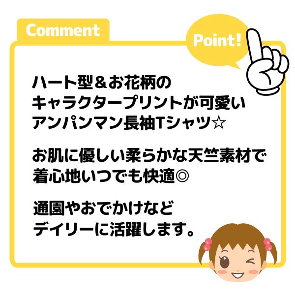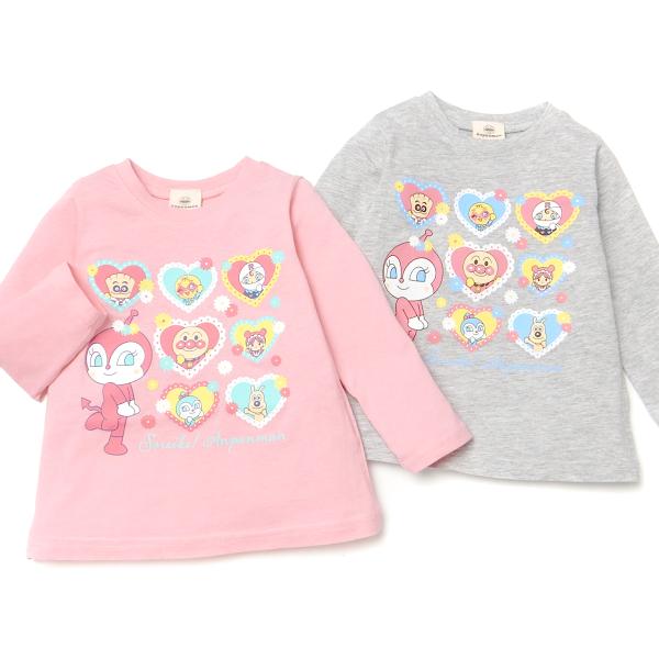 送料無料 女児 ベビー 天竺 長袖 Tシャツ アンパンマン ハート&お花プリント ネームタグ ベビー服 女の子 iw-1383 メール便対応