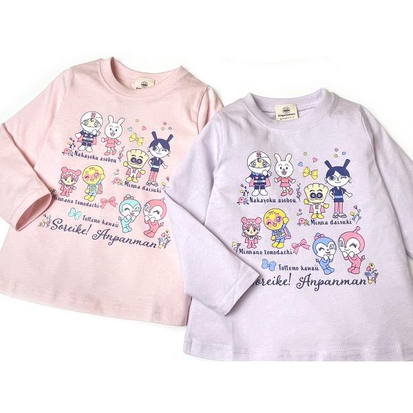 送料無料 アンパンマン 長袖 Tシャツ ロンT 女児 ベビー 女の子 メロンパンナ 綿100% ベビー服 子供服 90cm 95cm iw-1503