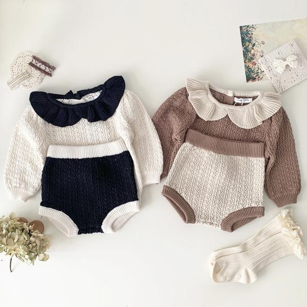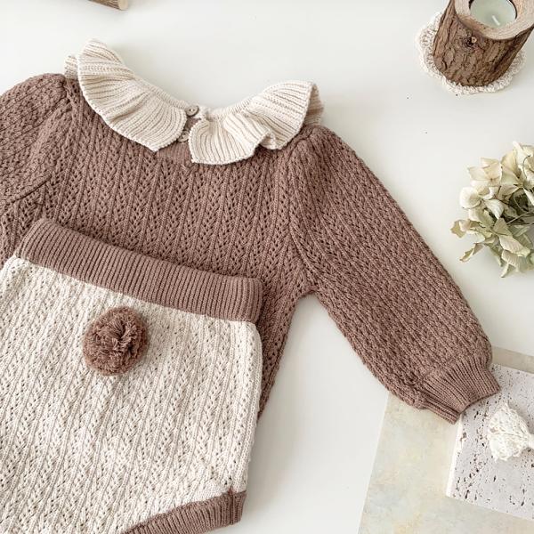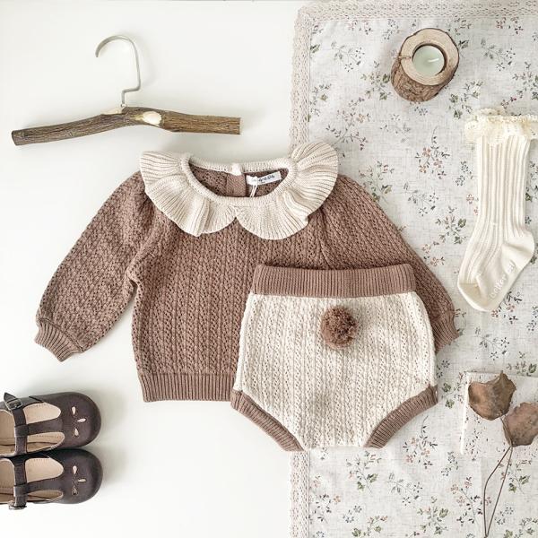 ニット セットアップ ボンボン 秋 秋冬 冬 女の子 襟フリル ベビー 赤ちゃん セットアップ ニット 子供服 キッズ 子ども かわいい おしゃれ