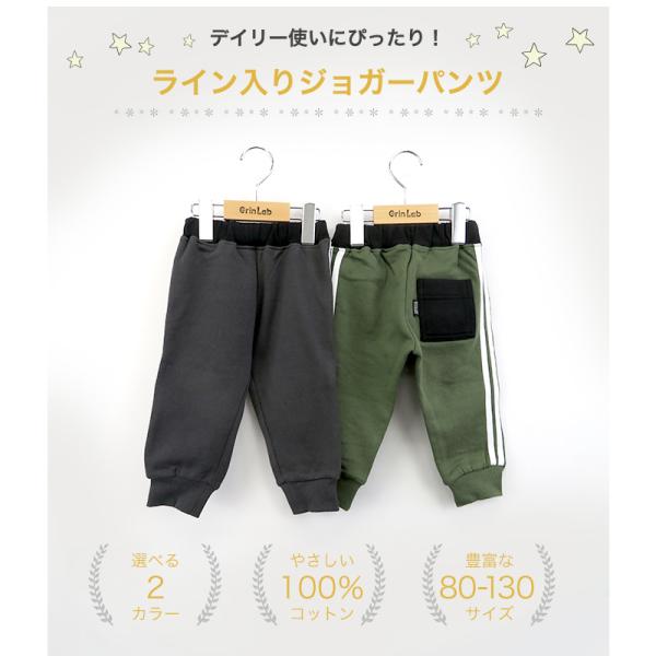 ジョガーパンツ 裏起毛 綿100% ライン入 ロングパンツ 長ズボン 80cm 90cm 95cm 100cm 110cm 120cm 130cm キッズ ベビー グリンラボ GrinLab