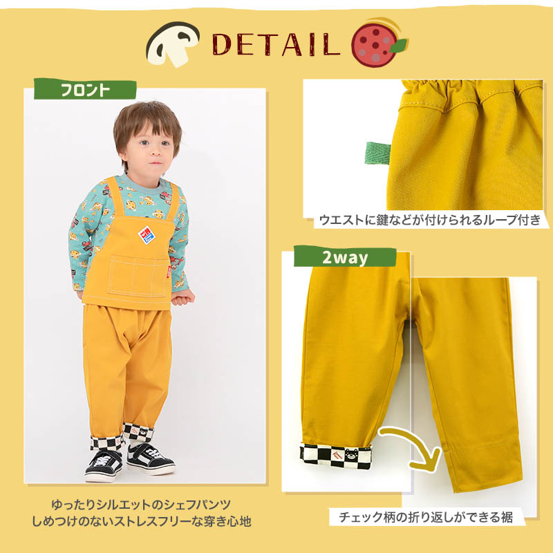 シェフパンツ キッズ ベビー 10分丈パンツ ツイル ロング 無地 チェック 裾 折り曲げ キャラクター ZOOMIC ズーミック 80cm 90cm 95cm 100cm 110cm 120cm 130cm