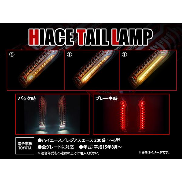 ハイエース 200系 1型2型3型4型5型6型 標準 ワイド対応 流れるウインカー付 ファイバー LED スモーク テールランプ