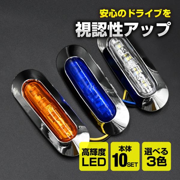 汎用 車 トラック トレーラー 12V 24V LED サイドマーカーランプ サイドマーカー ホワイト ブルー アンバー 4連LED 10個セット カスタム パーツ ランプ 車幅灯
