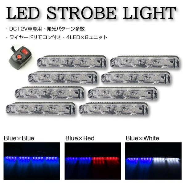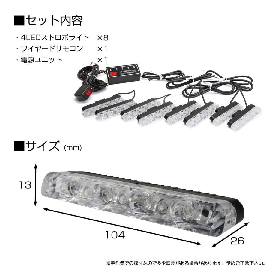 ストロボ フラッシュ ライト 4LED×8ユニット 発光パターン変更可 リモコン付き DC12V