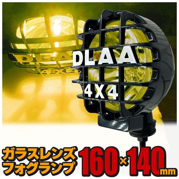 フォグランプ ストーンガード付 左右セット 汎用 丸型 イエロー ガラスレンズ DLAA LA921BB 160×220×140mm