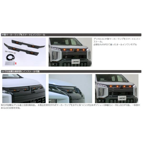 IPF グリルマーカー デリカD:5 TYPE2 後期 R8.1〜 (ディーゼル車) (CV#W型) ウレタン樹脂製未塗装 LEDアンバーマーカー仕様 EXD-06 欠品中5/中予定