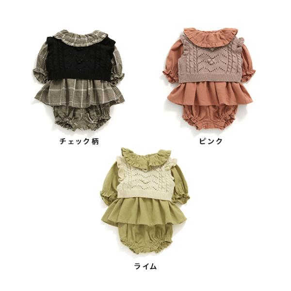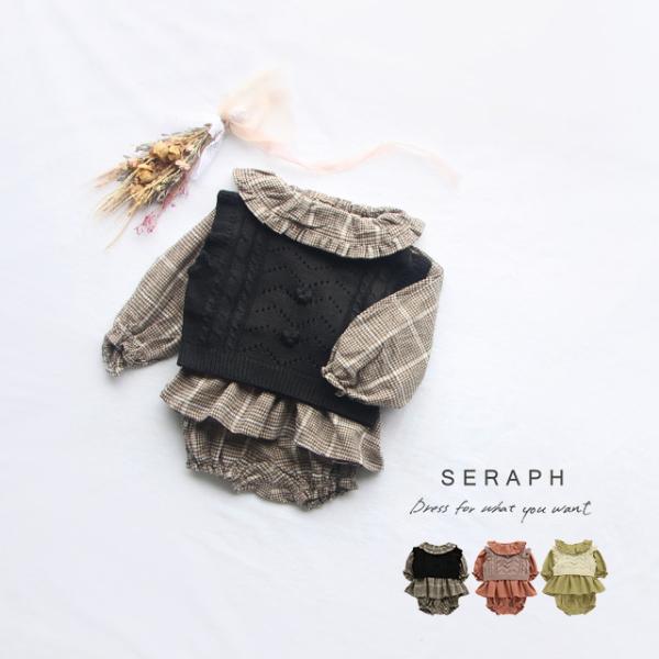 SERAPH ベスト付き3点セット S432072(ベビー服 女の子 80 秋冬 チュニック ブルマ ニットベスト セットアップ おしゃれ 出産祝い ベビー キッズ)