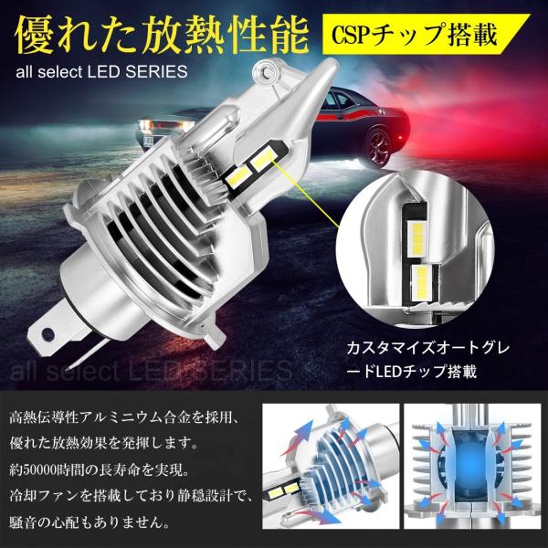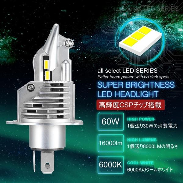 LEDヘッドライト H4 Hi/Lo 車検対応 高輝度16000LM ヘッドランプ ホワイト 6000K 爆光 車/バイク用 一体型 ledバルブ 1個