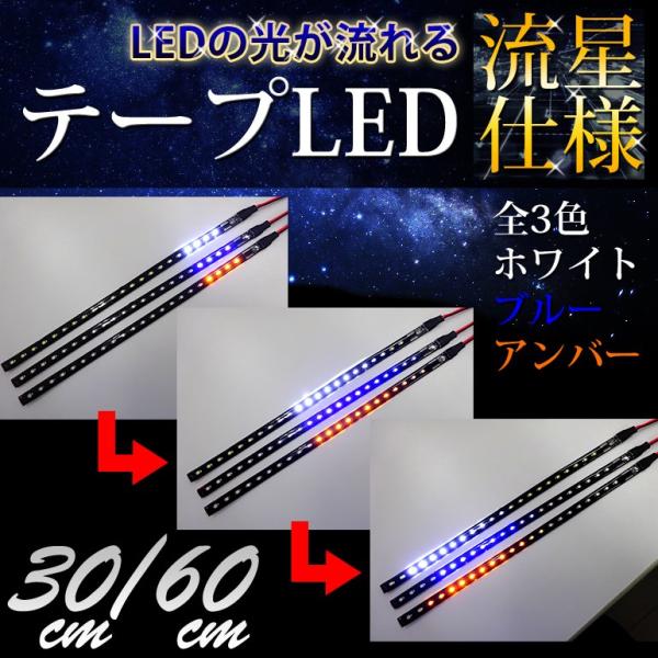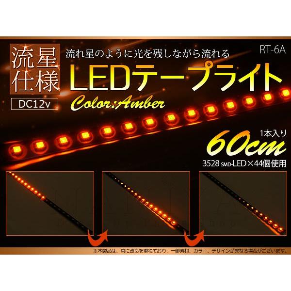 流星仕様 流れる LEDテープ 高輝度44LED 60cm アンバー 簡易防水 RT-6A