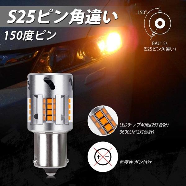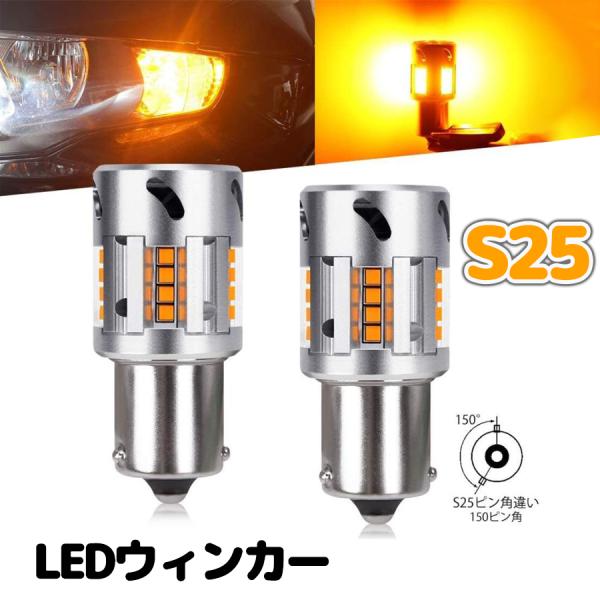 S25 ピン角違い LEDウィンカーバルブ 冷却ファン搭載 ハイフラ防止 抵抗内蔵 S25シングル 150° ピン角 BAU15S PY21W ステルス仕様 DC12V車用 無極性2個入り