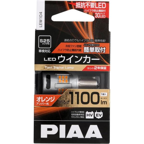 【在庫有】 PIAA ウインカー LED アンバー 冷却ファン搭載/ハイフラ防止機能内蔵 1100lm 12V S25 2年保証 車検対応 1個入 LEW104 ピア オレンジ