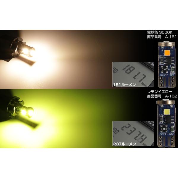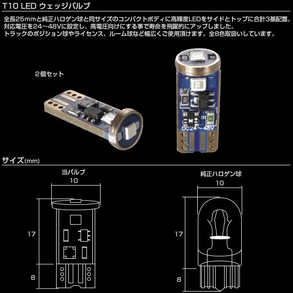 24V用 T10 LED ウェッジバルブ 2個セット 小型 3SMD搭載 ポジション ライセンスランプ等に A-155-162