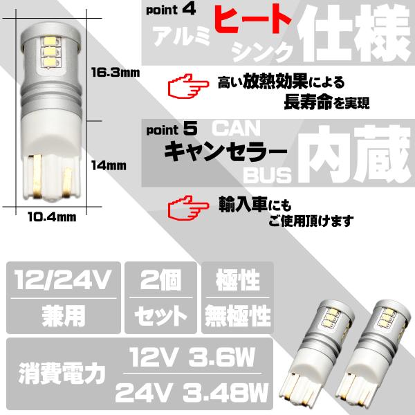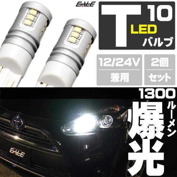 12V 24V 兼用 T10 LED ウェッジバルブ 2個セット 1300lm 15SMD搭載 ホワイト ポジション バックランプ 等に A-163