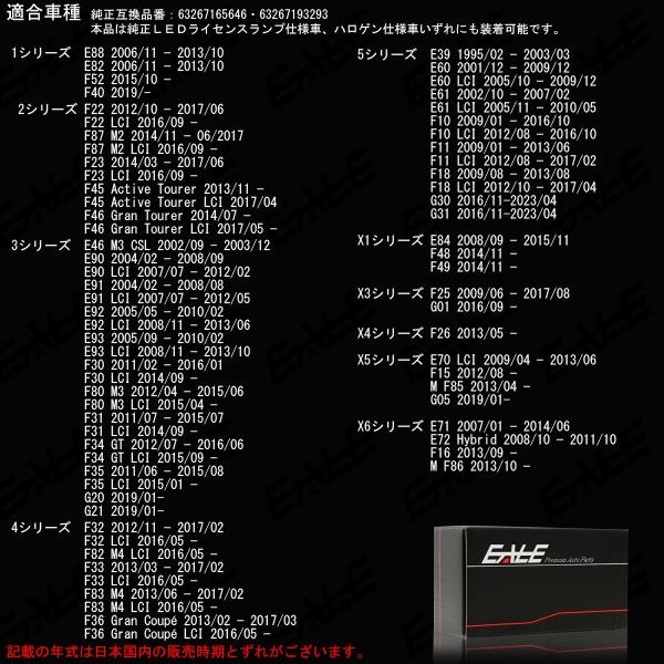 BMW LED ライセンスランプ 3シリーズ G20 G21 F35 F34 F31 F80 F30 E93 E92 E91 E90 R-109-1