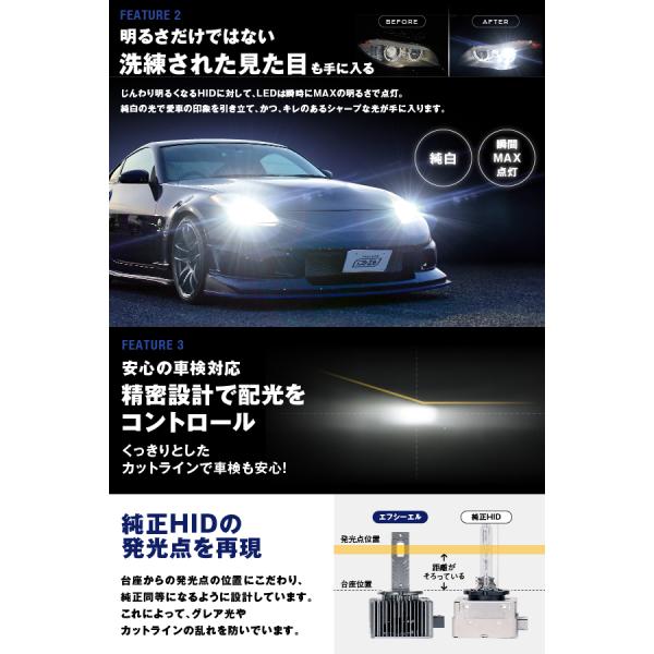 d2s d2r d4s d4r led ヘッドライト ポン付け 純正hid 交換 led化 ledバルブ d1s d3s 車検対応 ホワイト 12v 2個1セット 配線なし バルブ交換