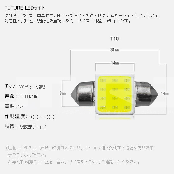 【買えば買うほど安くなる】LEDルームライト T10*31mm COBチップ LED電球 フェストン球 ゆうパケット送料無料 LEDバルブ 1個 2個 4個 10個