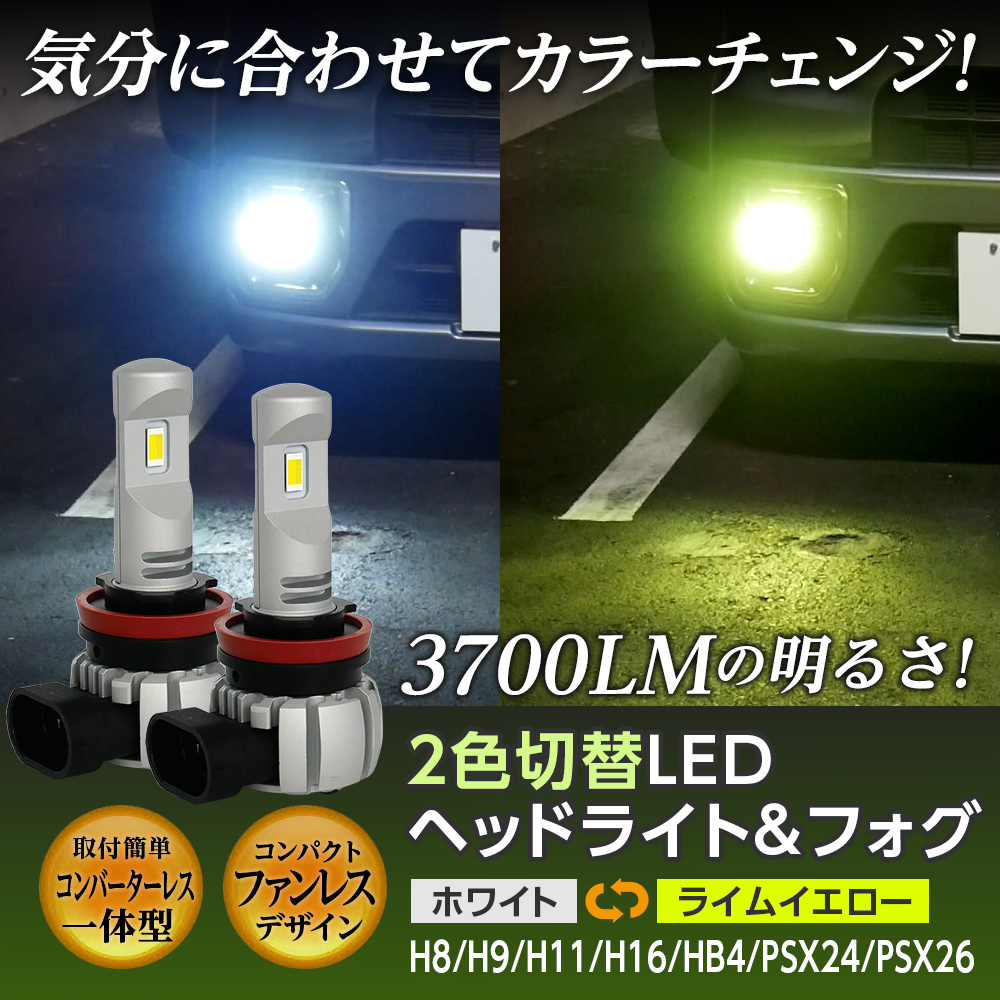 信玄XC IROCHI ライムイエロー ホワイト 2色切替 LED 一体型 ヘッドライト フォグランプ 2灯合計3700LM H8 H9 H11 H16 HB4 PSX24 PSX26 X05