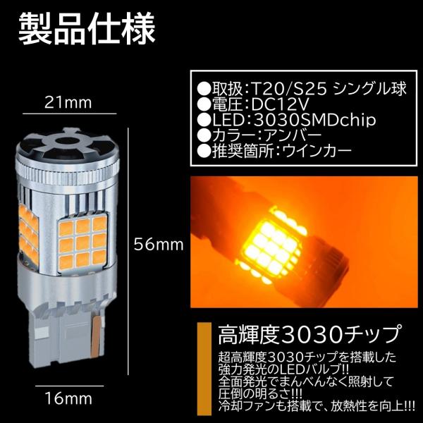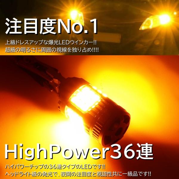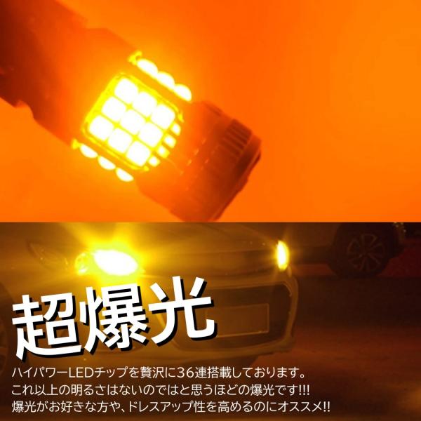 36連 超爆光 LEDウインカー 3030SMD T20 S25シングル 150度 180度 アンバー ハイフラ防止抵抗内蔵 ピンチ部違い対応 LED 2個