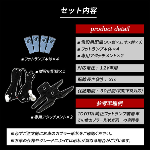 LED インナーランプ フットランプ 増設キット 純正交換 後部座席 足元 ライト トヨタ ホワイト ブルー アイスブルー ピンク レッド ドレスアップ 内装 パーツ