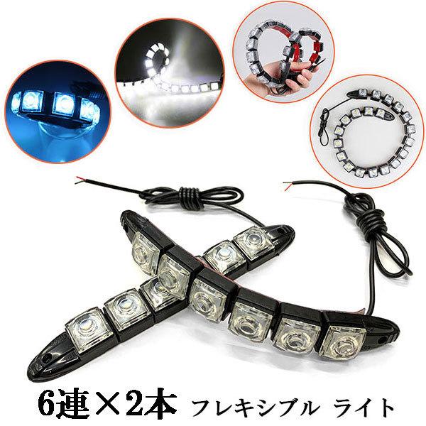 LED デイライト 1w×6連×2個 計12連 【フレキシブル】 ライト 送料無料