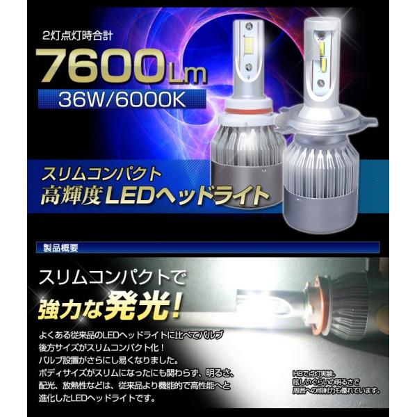 LED ヘッドライト H3 7600ルーメン 36W 6000K