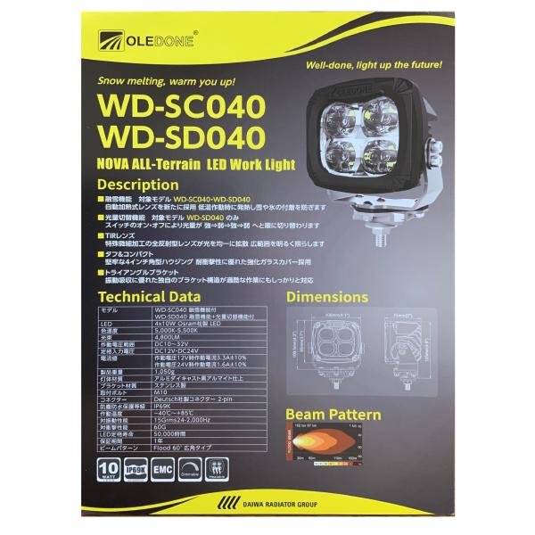 WD-SC040 融雪機能付きLED作業ライト 作業灯 除雪車に最適 OLEDONE LED LIGHT FLOOD