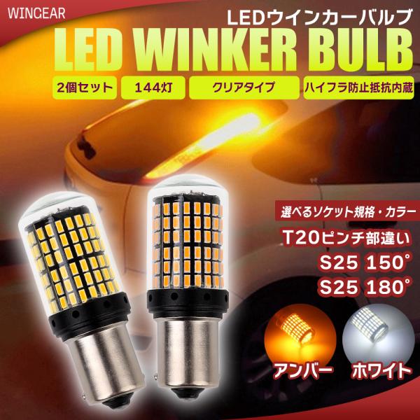 ウインカー バルブ LED T20 ピンチ部違い S25 150° / 180° シングル ランプ ライト 144灯 ハイフラ防止抵抗内蔵 アンバー ホワイト 2個セット
