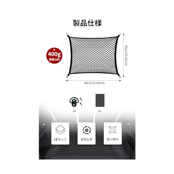 DCGLA ラゲッジネット 車用2層式ラゲージネット トランクカーゴ 車 天井ネット カーゴネット 2重式 ランク収納 高弾力の PP糸製 60