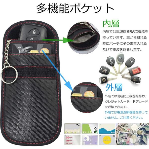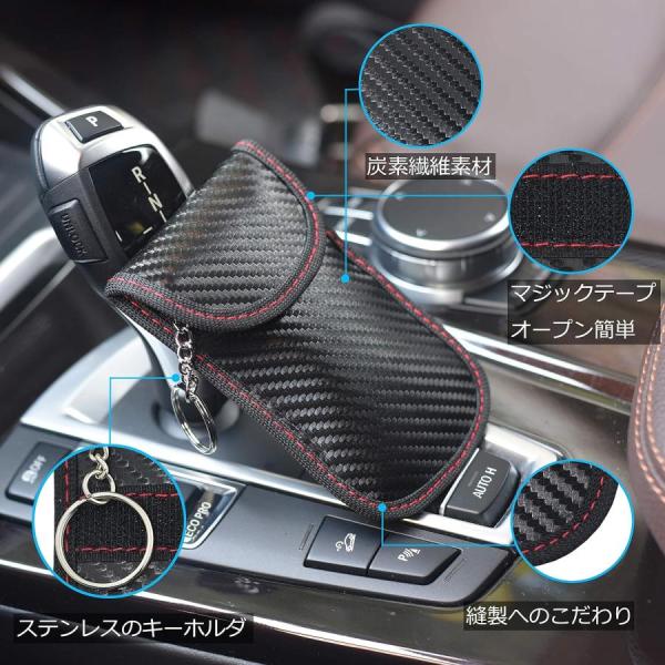 車 盗難防止 リレーアタック ポーチ 電波遮断ポーチ スマートキー用 スキミング防止 炭素繊維素材 スマートキーケース 対策 カーセキュリティ