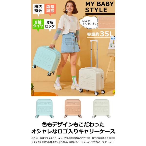 スーツケース 機内持ち込み キャリーバッグ キャリーケース S サイズ MY BABY STYLE ロゴ入り 小型 かわいい ファスナー 3桁ダイヤル式ロック GPT (gu1b853)