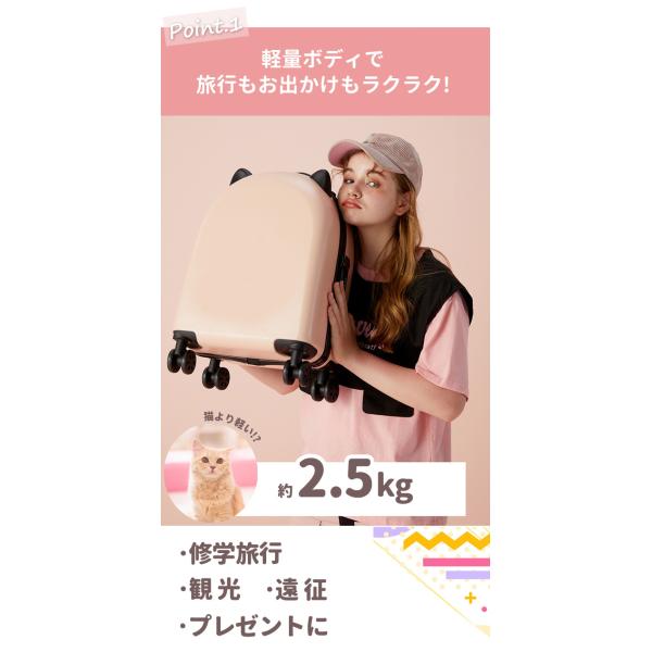 訳あり スーツケース 機内持ち込み かわいい 猫耳 ネコ キャリーケース キャリーバッグ Sサイズ 女の子 子供 小学生 中学生 軽量 1泊2日 GPT gu1b143-b(gu1b935)
