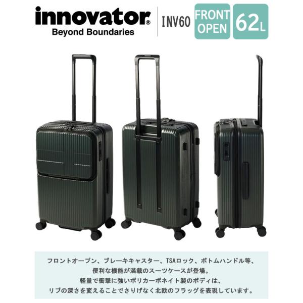 イノベーター スーツケース キャリーバッグ INV60 Mサイズ TSA トリオ ファスナー 中型 4泊 フロントオープン ブレーキキャスター (to4a104)「C」