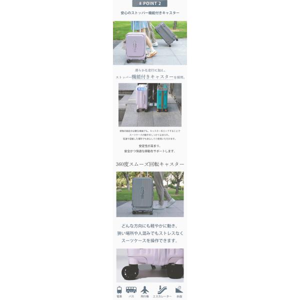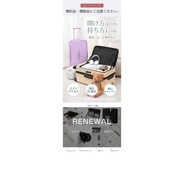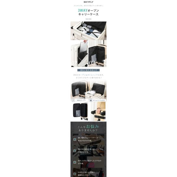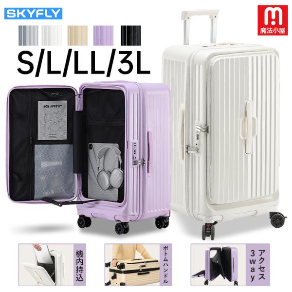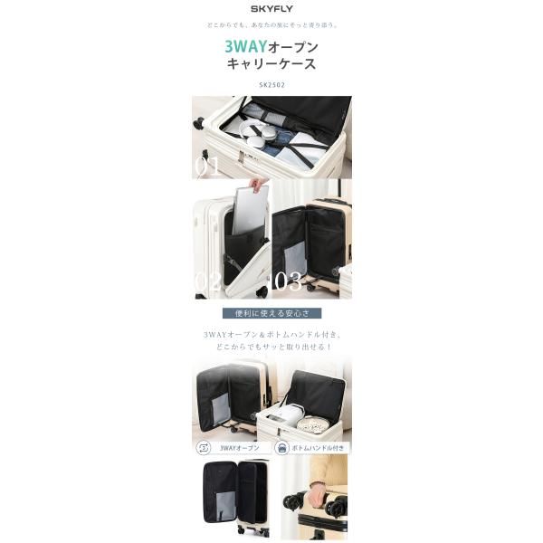 スーツケース メインアクセス フロントオープン キャリーケース 大容量 ストッパー TSA キャリーバッグ ファスナー ダブルキャスター 静音 軽量 旅行 SK2502