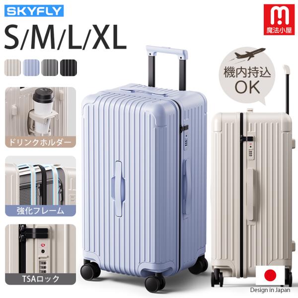 押してもへへたらない超軽量 スーツケース Lサイズ 大容量 キャリーケース キャリーバッグ 大型 ドリンクホルダーTSA 静音 旅行 ZH41