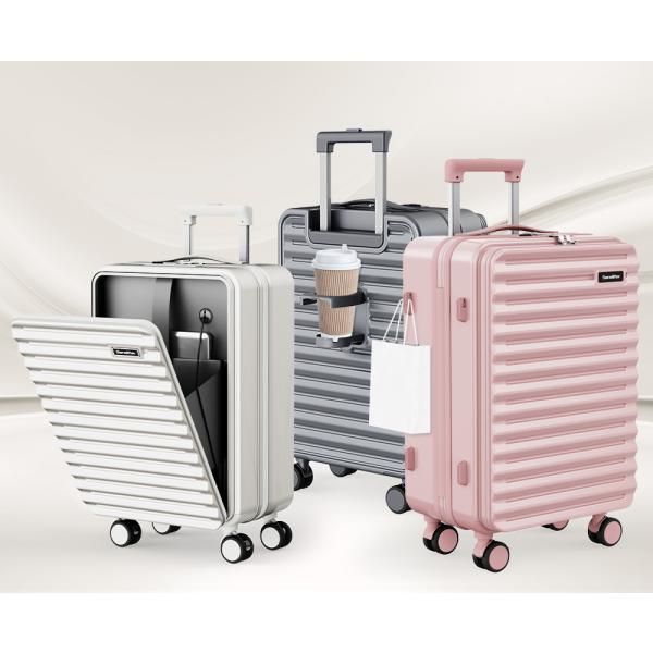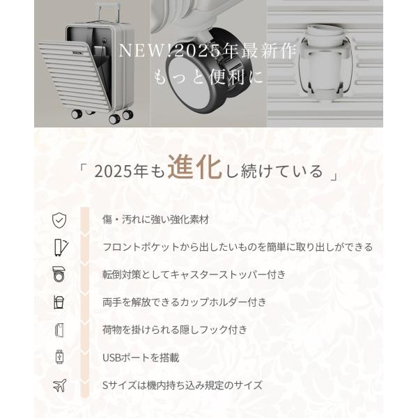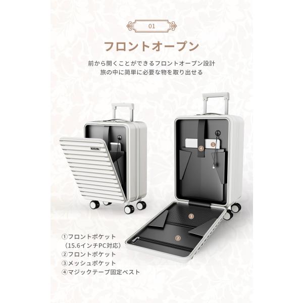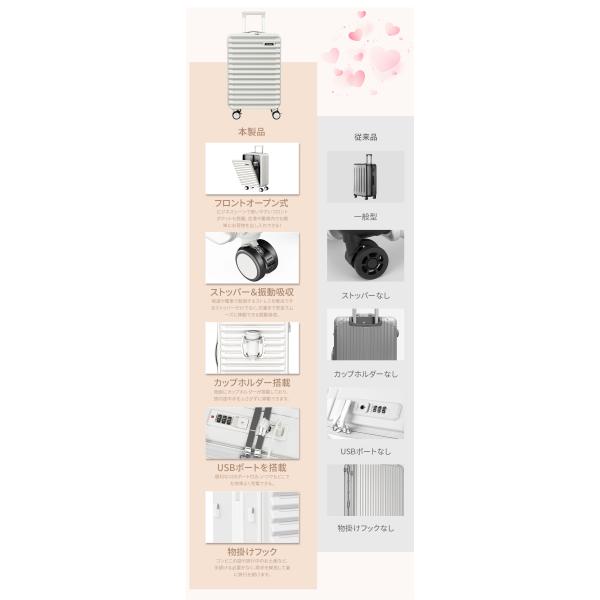 スーツケース フロントオープン キャリーケース 機内持ち込み 前開き ストッパー付き S Mサイズ 1-3泊 カップホルダー キャリーバッグ 静音 軽量 旅行 大容量