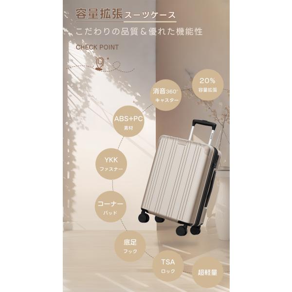 スーツケース 機内持ち込み 拡張機能付き キャリーケース キャリーバッグ S M Lサイズ 40L 65L 100L 2泊3日 超軽量 大容量 フック付き 静音 TSAロック 出張 旅行