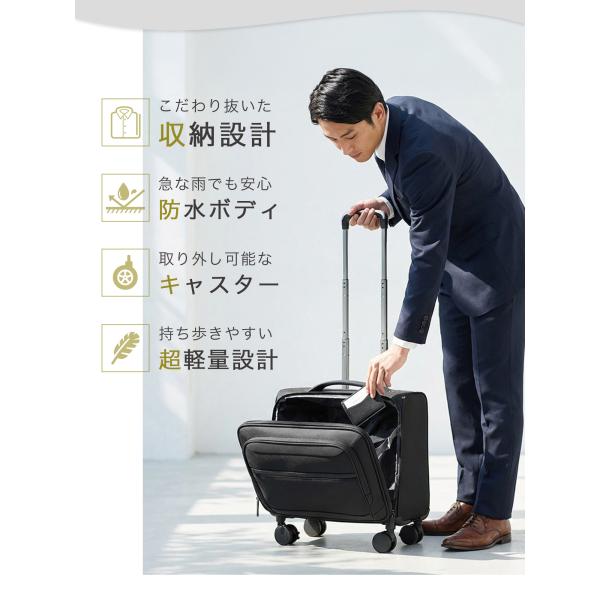 スーツケース キャリーケース 機内持ち込み ソフトキャリー 横型 Sサイズ s フロントオープン 取り外しキャスター ストッパー ビジネス 出張 軽量 ソフトタイプ