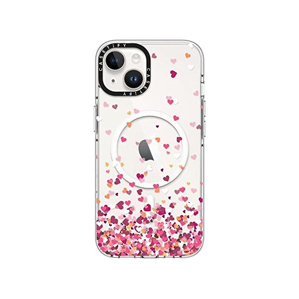 CASETiFY クリア iPhone 14 ケース [黄ばみにくい素材/2mからの落下試験をクリア/MagSafe に対応] - Confetti Hearts
