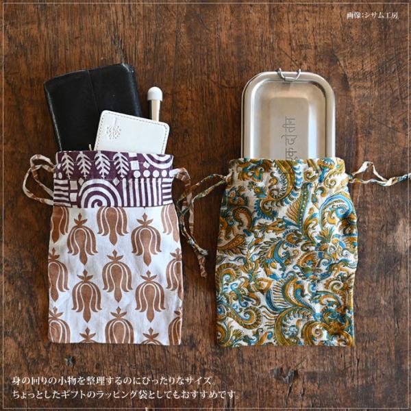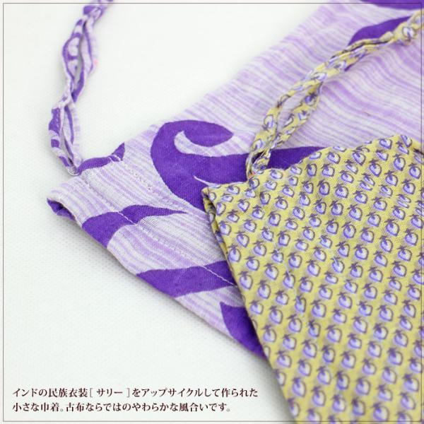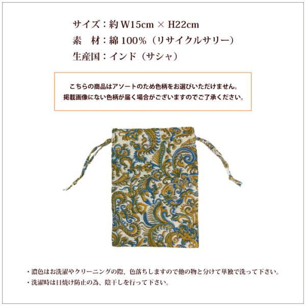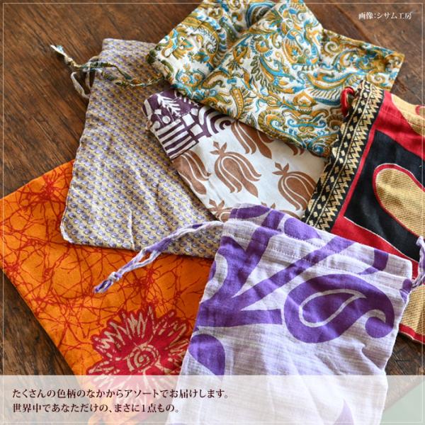 巾着袋 ポーチ シサム工房 リサイクルサリーの巾着 フェアトレード 手作り 雑貨 プチギフト (メール便対応)