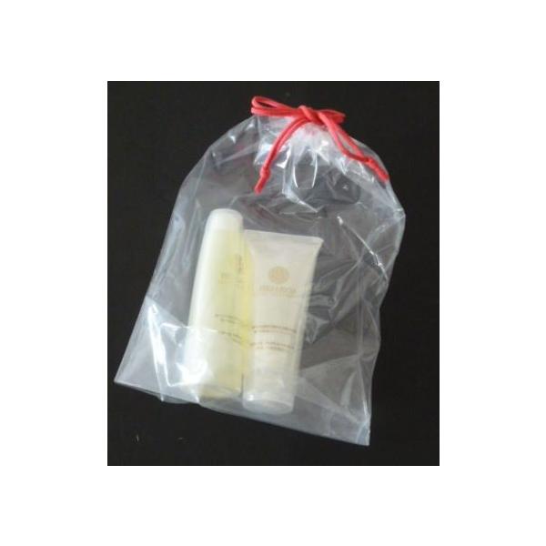 透明巾着袋 透明ポリ巾着袋 透明ビニール巾着袋 紐:赤 サイズ260×350(底マチ80ミリ) 20枚パック/セット