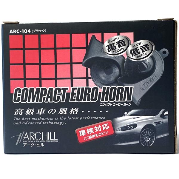 響音 コンパクトユーロホーン 車検対応/二輪車OK!ブラック ARC-104 ホーン 車