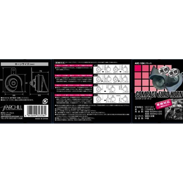 AH コンパクトユーローホーン 車検対応 ARC-104 ブラック