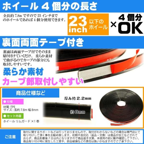ホイール リムガード リムプロテクター 約7.8m ブラック 工具不要 貼り付けるだけリムガード モール ホイール雰囲気が変わる as1643