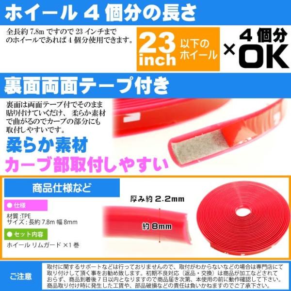 ホイール リムガード リムプロテクター 約7.8m ピンク 工具不要 貼り付けるだけリムガード モール ホイール雰囲気が変わる as1648