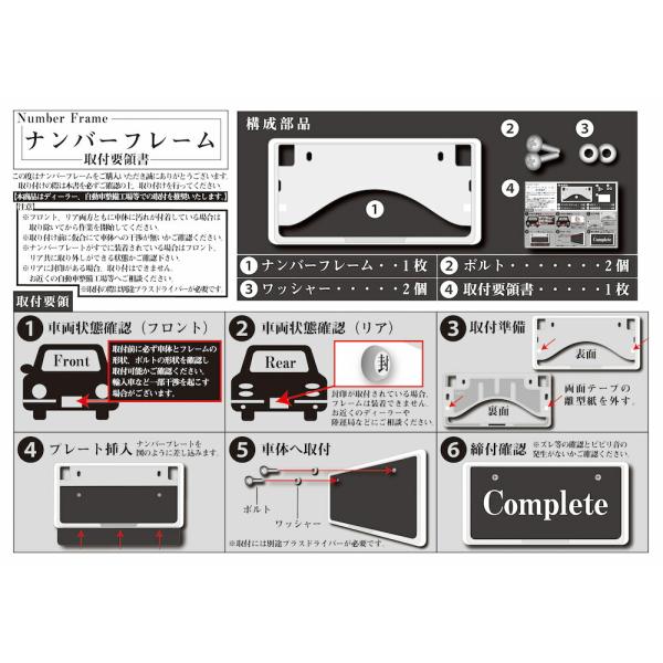 軽・普通自動車用 メッキナンバーフレーム 前後2枚セット 1台分 新基準対応 ナンバー枠 プレート NFC