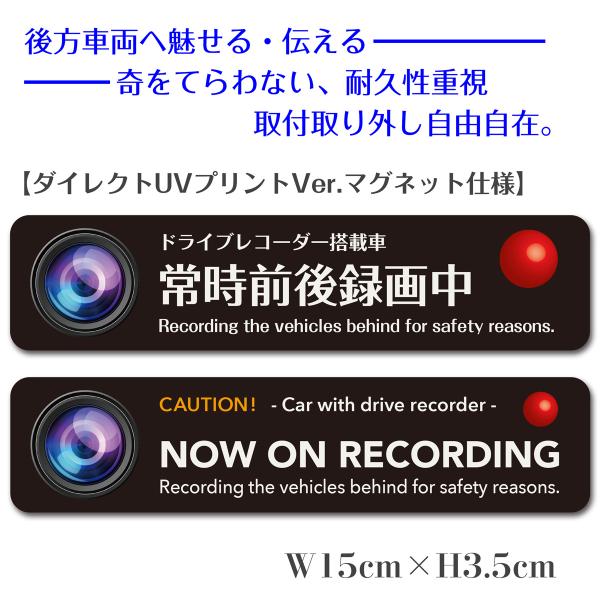ドライブレコーダー搭載・録画中 『スリムタイプ』ダイレクトUVプリントマグネットシート 【15cm×3.5cm】 あおり運転抑止に。。。