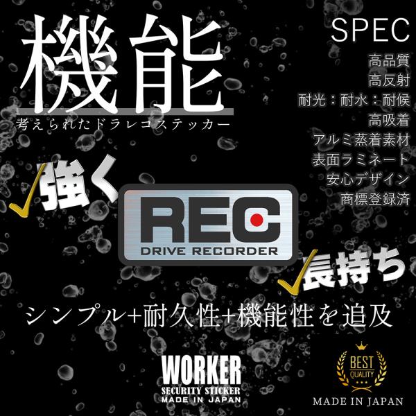 【DESIGNZ】ワーカーセキュリティーステッカー ドライブレコーダーステッカー (屋外内用:耐光/耐水/耐候) 車載カメラ 後方録画中 屋外用 (ヘアライン)
