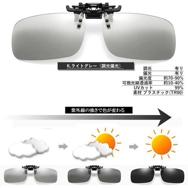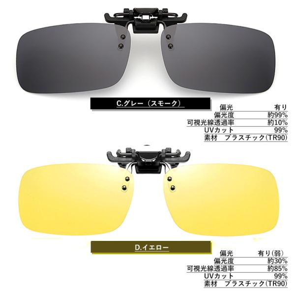 偏光 クリップ オン サングラス 調光偏光(Kライトグレー,Lライトイエロー)夜用(Dイエロー) フリップアップ 眼鏡の上から