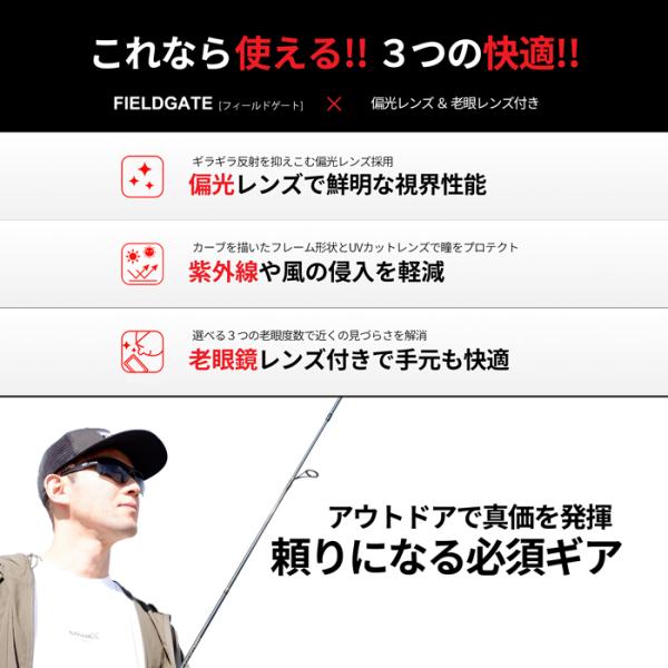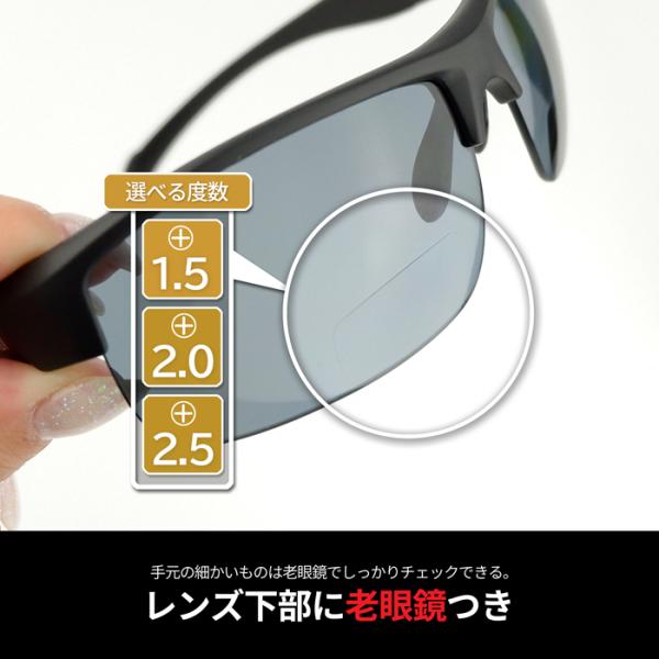 老眼鏡つき 偏光サングラス 老眼用サングラス 遠近両用 +1.50 +2.00 +2.50 釣り ゴルフ ランニング UVカット フィッシング、登山、サイクリング、ロードバイク